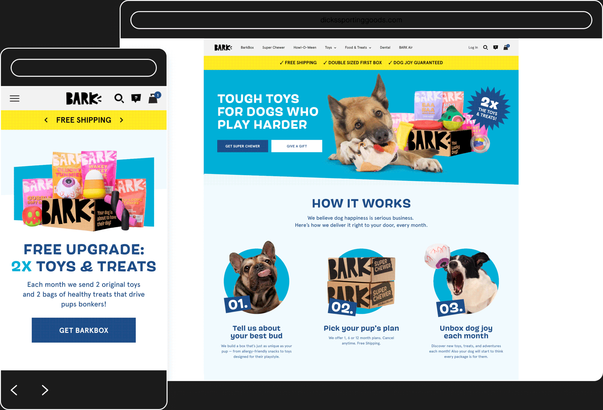 I designed this template for BARK’s join page in Figma to allow for quick visual updates tailored to our themed campaigns. After finalizing the imagery and color palette for each theme, I built the page in Replo, ensuring a responsive design optimized for both desktop and mobile.